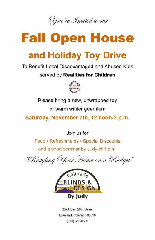 Dear Friends, We look forward to seeing you at our open house on Saturday, November 7th. We’ll be collecting new toys and warm winter gear on behalf of area youth…
